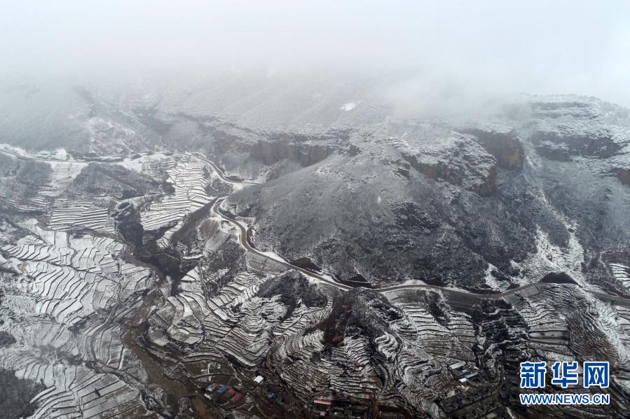 連日來,河北省沙河市西部山區出現降雪天氣,白雪覆蓋的梯田宛如一幅水墨畫。