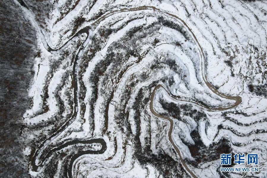 連日來,河北省沙河市西部山區出現降雪天氣,白雪覆蓋的梯田宛如一幅水墨畫。