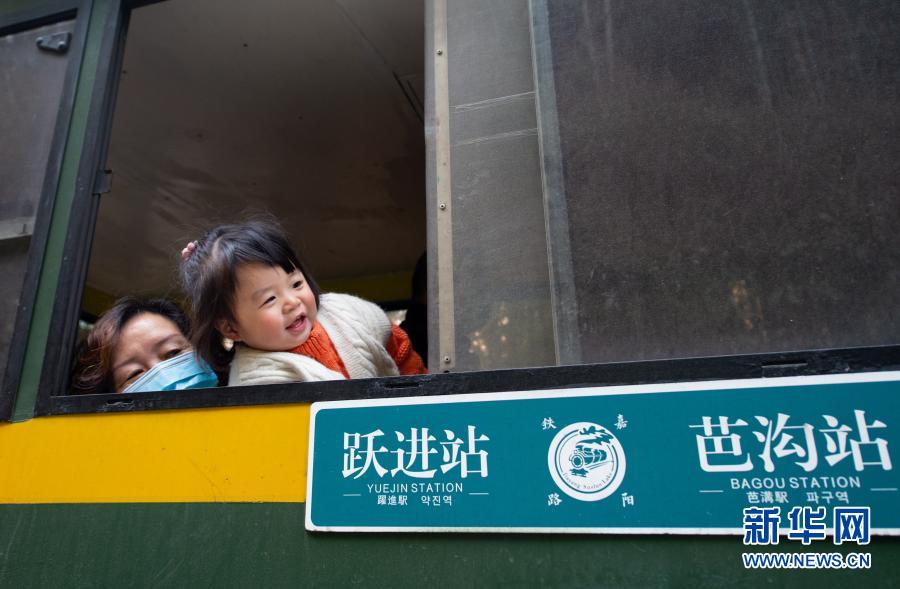 3月2日,游客在躍進(jìn)站乘坐嘉陽小火車到芭溝站。