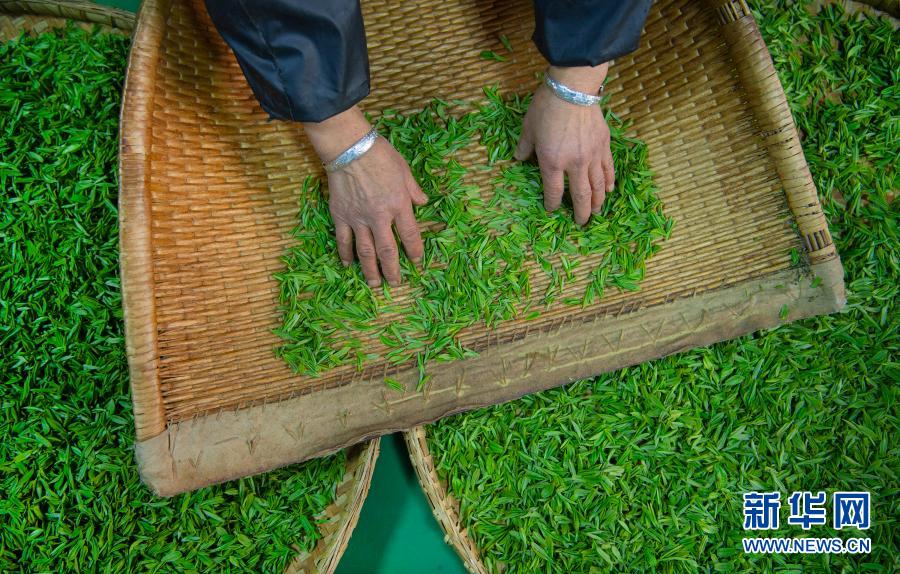 3月4日,安康市漢濱區流水鎮剛子茶葉專業合作社的社員在篩選采摘的新茶。新華社記者 陶明 攝