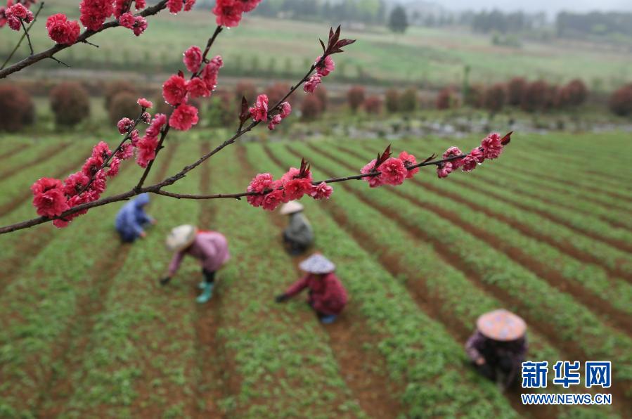 3月20日,村民在貴州省丹寨縣興仁鎮中藥材培植基地除草。