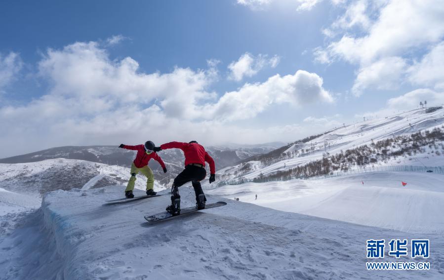 3月20日,冬殘奧會國家集訓隊單板滑雪運動員劉伊揚(左)和武中偉在冬殘奧會訓練基地訓練。新華社記者 才揚 攝