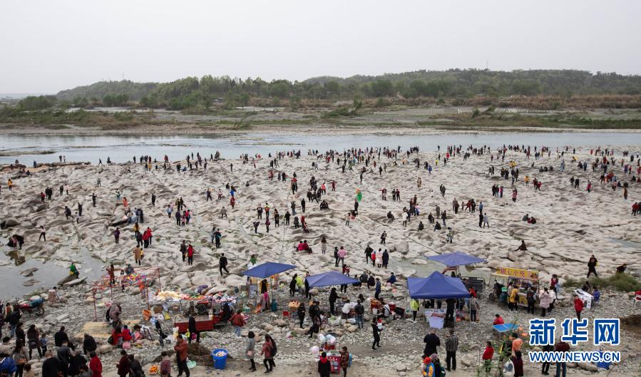 3月21日,涪江江油市青蓮鎮(zhèn)中河村段的石灘吸引眾多游客。