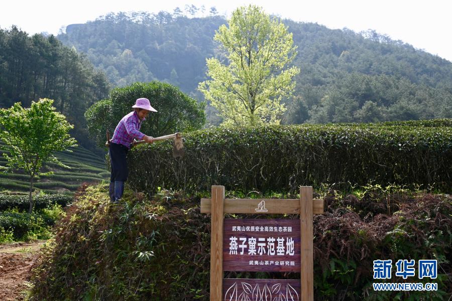 3月23日,茶農在武夷山星村鎮燕子窠生態茶園除草。