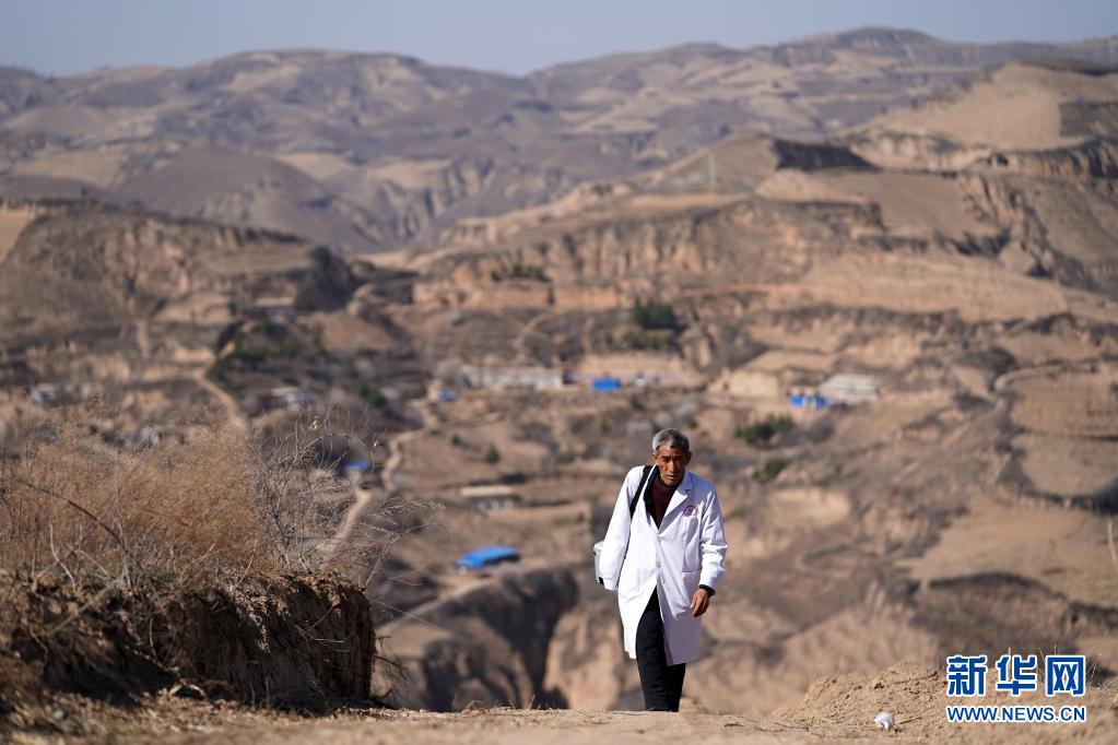 張尚保走在去鐵頭村張家灣自然村出診的路上(3月23日攝)。