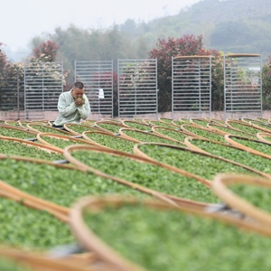 4月2日,茶農(nóng)在福鼎市佳陽畬族鄉(xiāng)的一處茶山采茶(無人機照片)。新華社記者 林善傳 攝