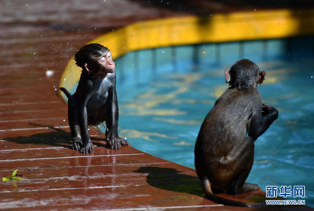 4月4日,南灣猴島保護區(qū)里的獼猴在上岸后甩去身上的水。