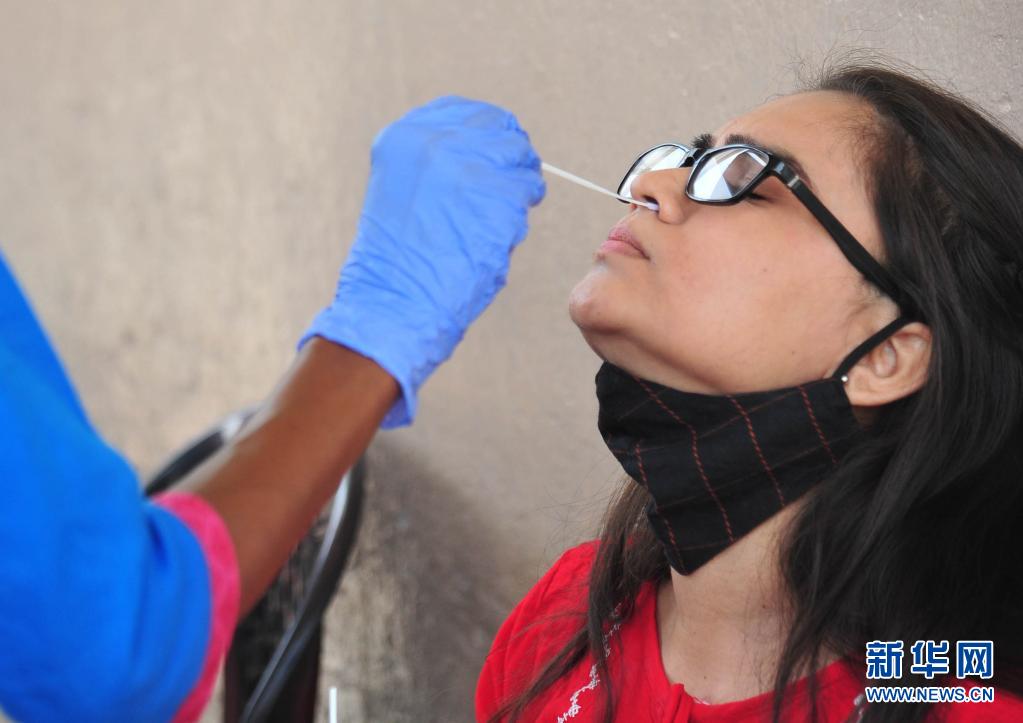 4月11日,一名女子在印度班加羅爾的一個公交站接受新冠病毒檢測取樣。