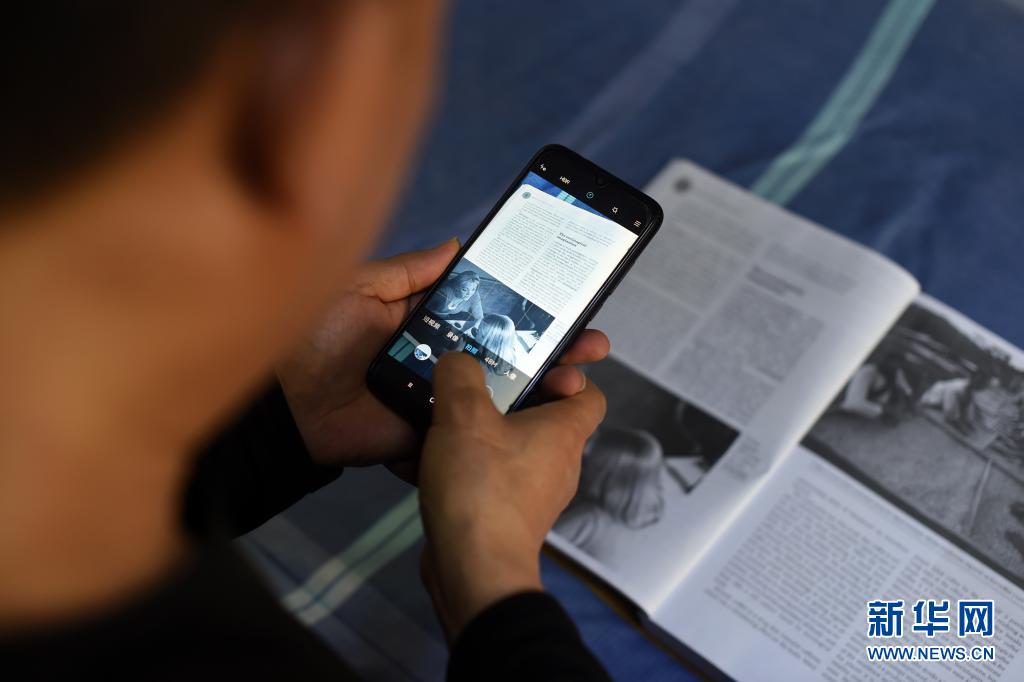 包珍妮無法正常閱讀紙質(zhì)書籍,父親包宗鋒將書的內(nèi)容分頁(yè)拍照供她在電腦上學(xué)習(xí)(4月14日攝)。