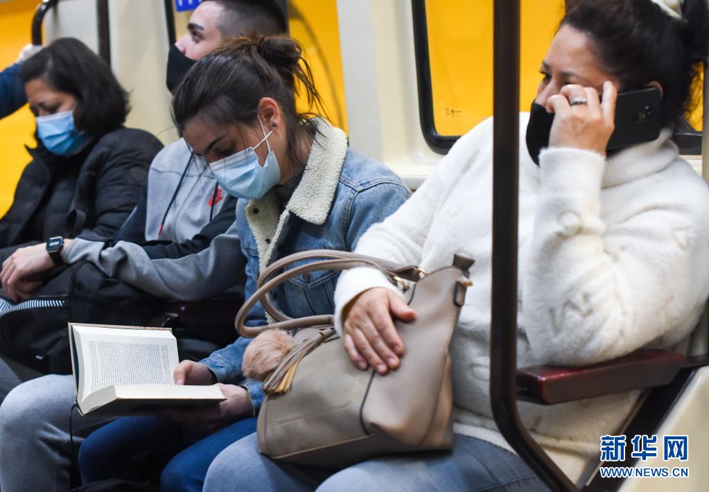 4月14日,一名女子在西班牙馬德里的地鐵內讀書。