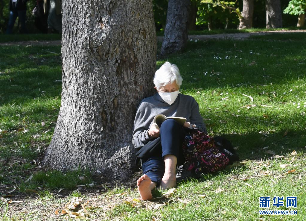 4月17日,一位老人在西班牙馬德里一個公園內讀書。