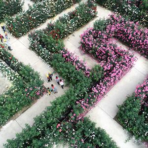 4月26日,游客在位于杭州市臨安區天目山鎮天目月鄉的示范型村落景區玫瑰園內采摘食用玫瑰花。近日,各地鮮花盛開,吸引人們走出家門踏青賞花。新華社發(胡劍歡 攝)