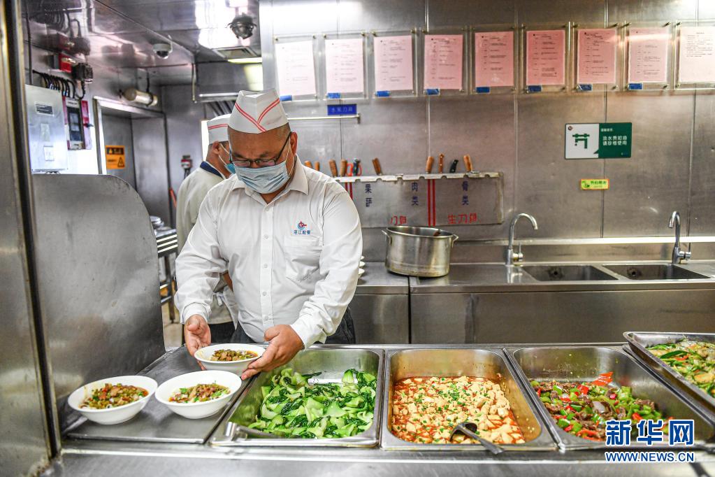 4月25日,廚師在中國(guó)海油樂(lè)東15-1氣田餐廳內(nèi)準(zhǔn)備午餐。