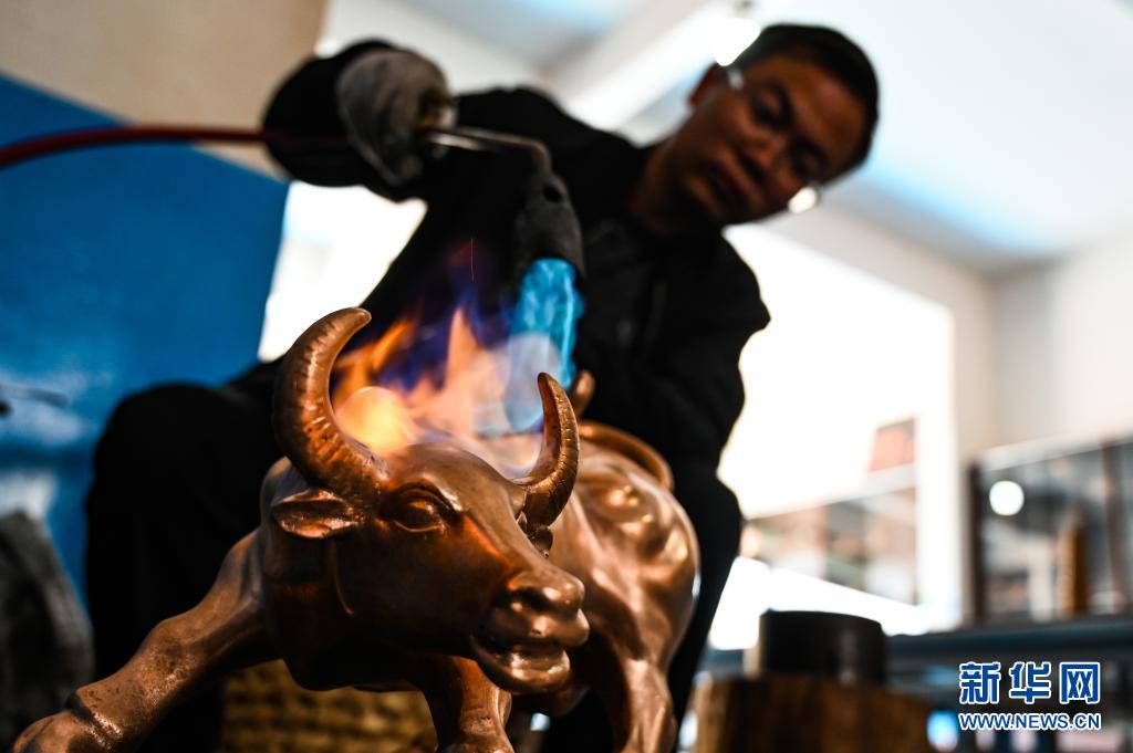 地處滇東北、烏蒙山腹地的云南會澤縣流傳著具有300多年歷史的斑銅制作工藝。斑銅工藝復雜,要采用高品位的銅為原料,經(jīng)過20余道工序制作而成。產(chǎn)品“妙在有斑,貴在渾厚”,風格獨樹一幟。33歲的張偉是會澤“張氏斑銅”的第十三代傳人。自幼深受地域文化和家庭熏陶的他,大學畢業(yè)后,返鄉(xiāng)從事斑銅制作工作。在會澤古城的“銅匠街”,張偉創(chuàng)辦了斑銅傳習館,不斷研發(fā)斑銅新產(chǎn)品、傳承著這項非遺技藝。“斑銅是一種情感、一種文化,希望在我們這代人的努力下能夠更好地將它傳承下去,讓更多人了解斑銅的獨特魅力。”張偉說。
