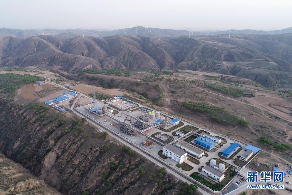 延長石油集團(tuán)有限責(zé)任公司延長氣田采氣二廠一處天然氣凈化站(4月28日攝,無人機(jī)照片)。新華社記者 張博文 攝