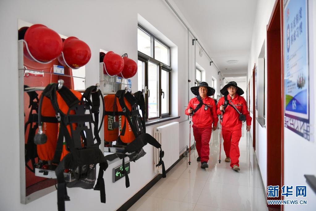 4月28日,巡線(xiàn)隊(duì)員侯勵(lì)峰、曹碩(右)從住地出發(fā)準(zhǔn)備開(kāi)始巡線(xiàn)。新華社記者 張博文 攝