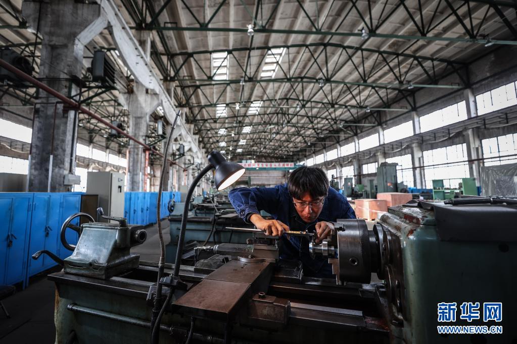 4月30日,王尚典在使用機床制作零件。