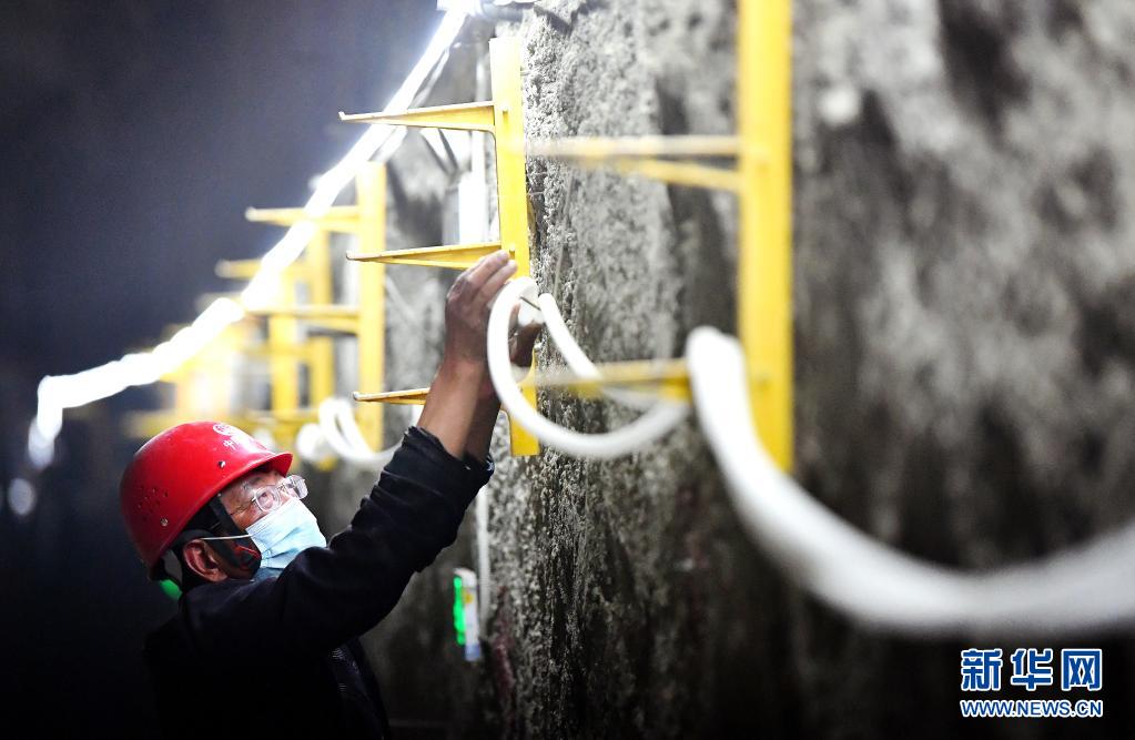 5月1日,在陜西西安地鐵八號線豐禾路站1號豎井施工現場,中鐵七局的工作人員在作業。