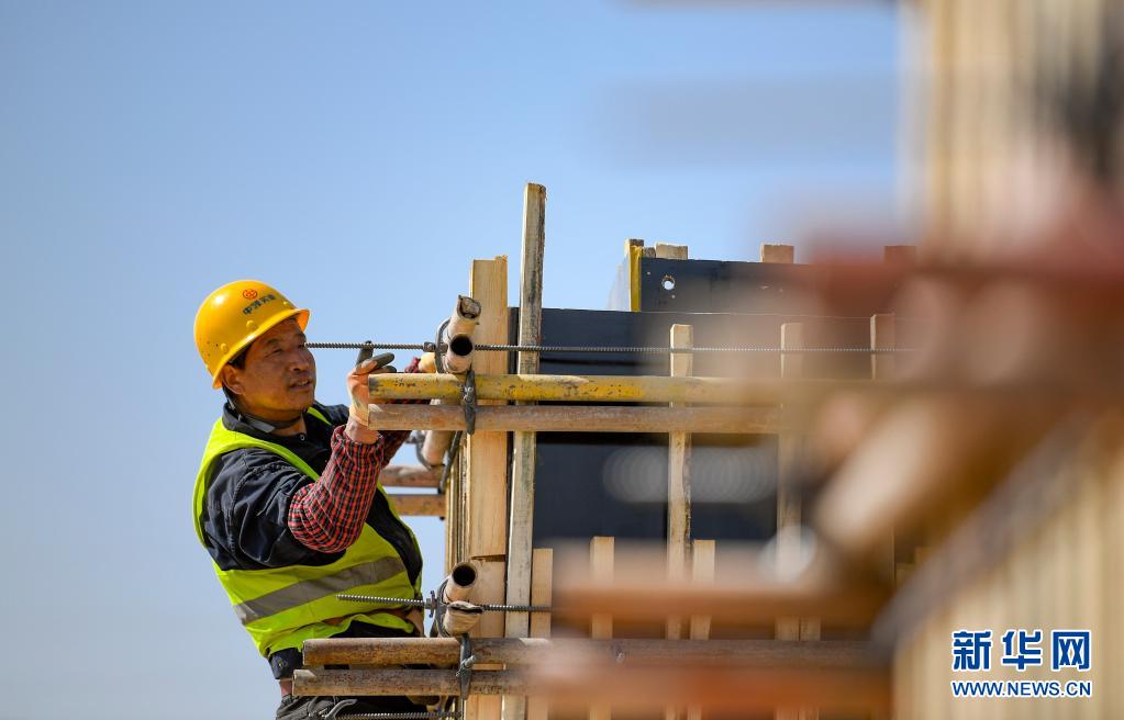 5月1日,寧夏銀川市經(jīng)濟技術(shù)開發(fā)區(qū)中環(huán)50GW(G12)太陽能級單晶硅材料智慧工廠項目的工人在現(xiàn)場作業(yè)。