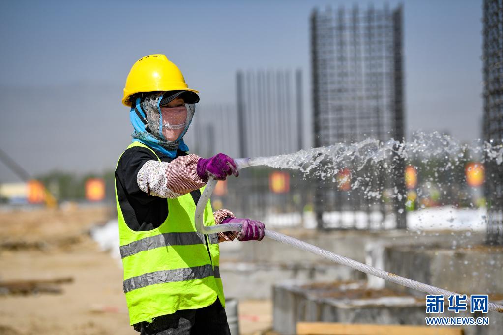 5月1日,寧夏銀川市經(jīng)濟(jì)技術(shù)開(kāi)發(fā)區(qū)中環(huán)50GW(G12)太陽(yáng)能級(jí)單晶硅材料智慧工廠項(xiàng)目的工人在現(xiàn)場(chǎng)作業(yè)。