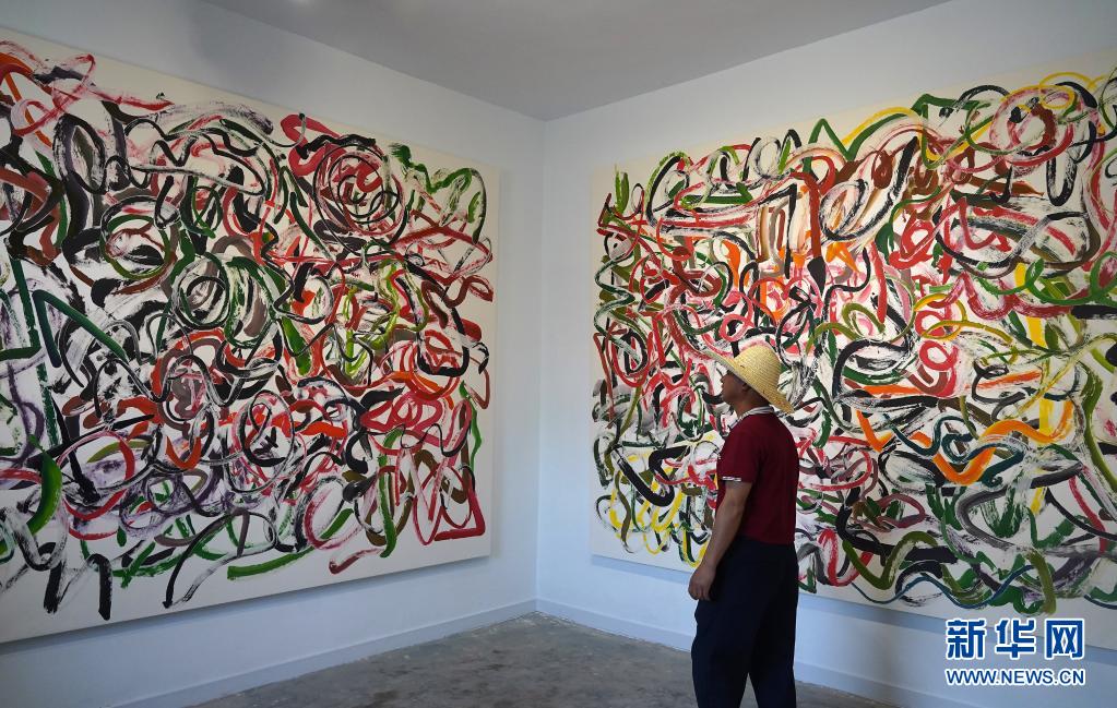 5月1日,參觀者在浮梁縣寒溪村參觀藝術(shù)作品《五百筆@浮梁》。