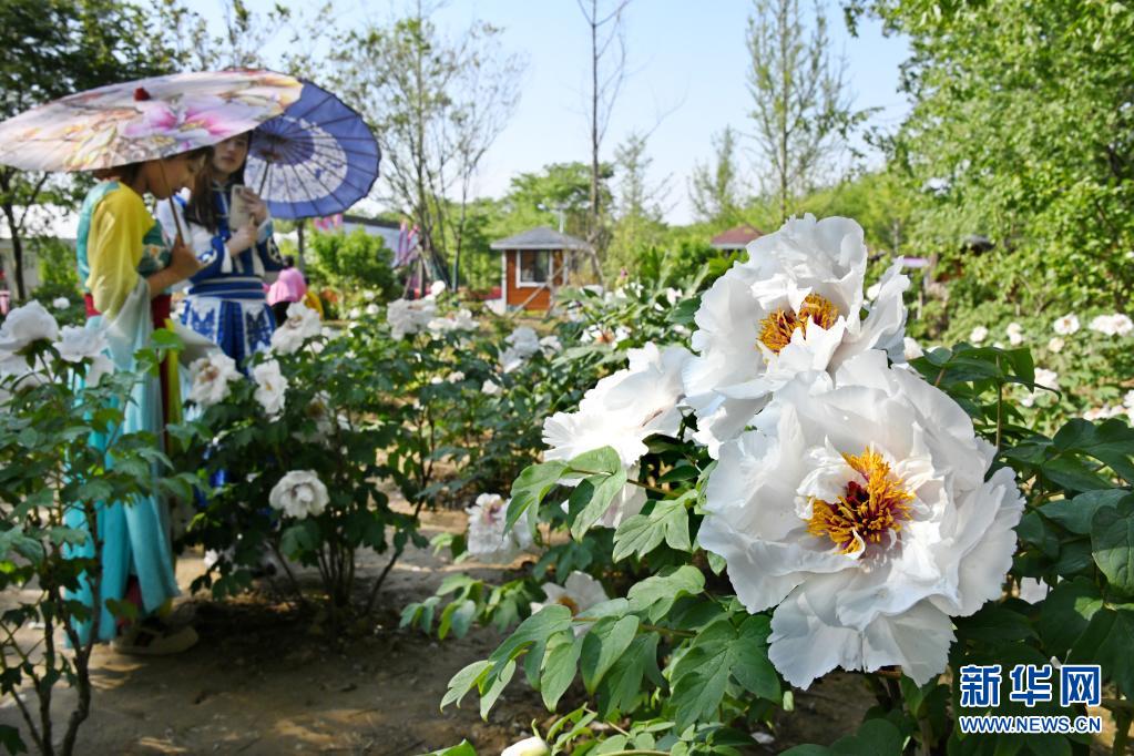 “五一”假期,位于山東青島西海岸新區的國際牡丹產業園舉行賞花會,競相綻放的各色牡丹花吸引眾多游客前來踏青賞花,享受假日春光。