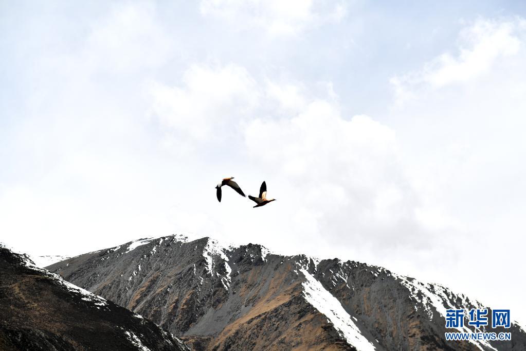 這是5月4日在那曲市比如縣境內(nèi)拍攝的薩普雪山附近的飛鳥。