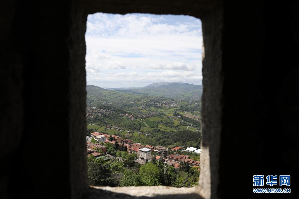 這是5月6日從圣馬力諾城中的一座堡壘內拍攝的風景。