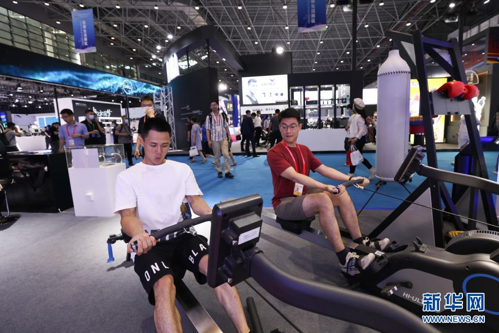 首屆中國國際消費品博覽會在海南省海口市舉行,其中包括旅居生活和服務消費等展區。參展商帶來的運動器械等產品吸引了諸多觀眾現場體驗、咨詢。