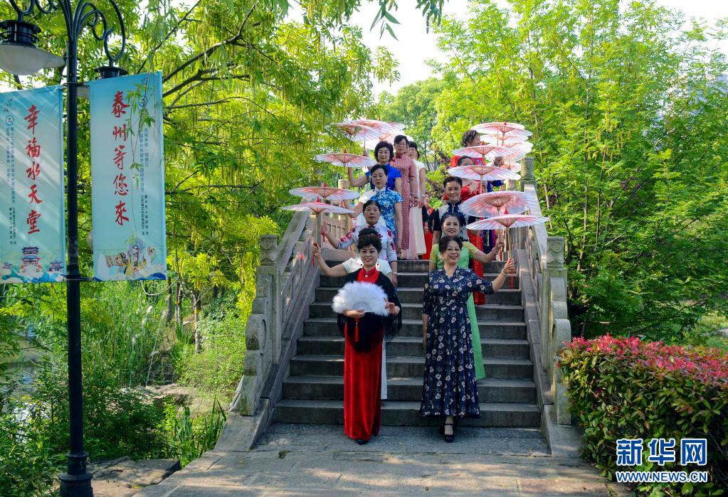 5月9日,江蘇泰州旗袍協(xié)會組織數(shù)十位媽媽在鳳城河景區(qū)進(jìn)行旗袍秀。