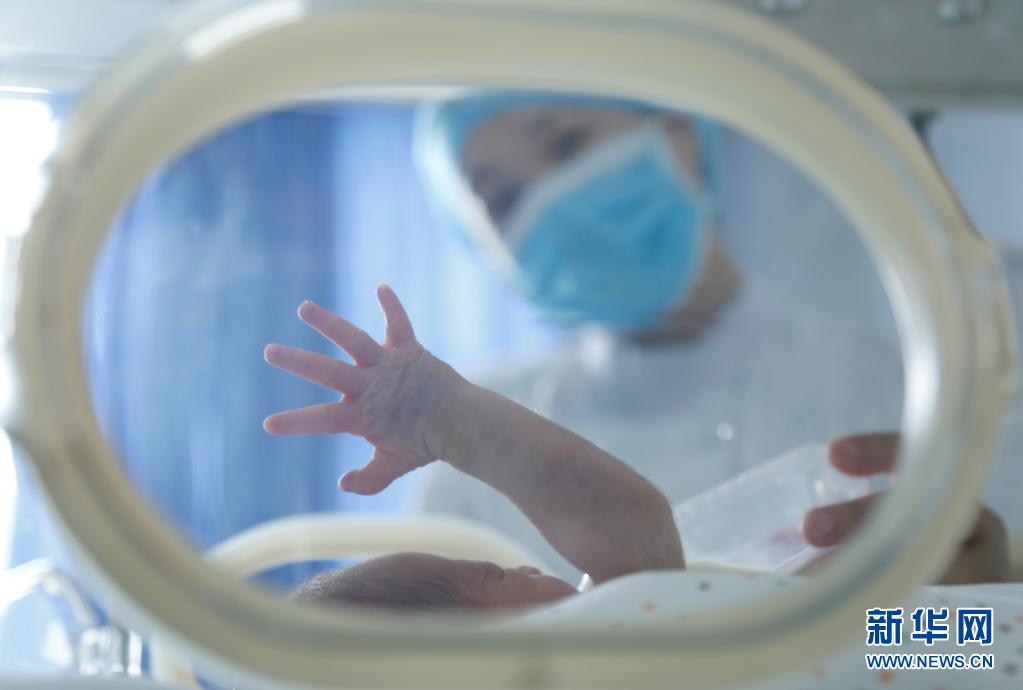 5月11日,在河北省邢臺市南和區(qū)人民醫(yī)院新生兒科,一名護士在護理新生兒。
