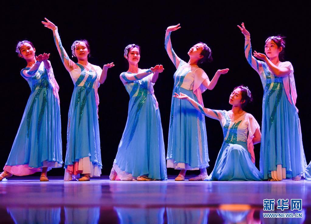 天津理工大學(xué)聾人工學(xué)院的舞蹈隊員們在學(xué)校的劇場里進行彩排(5月10日攝)。新華社發(fā)(孫凡越攝)