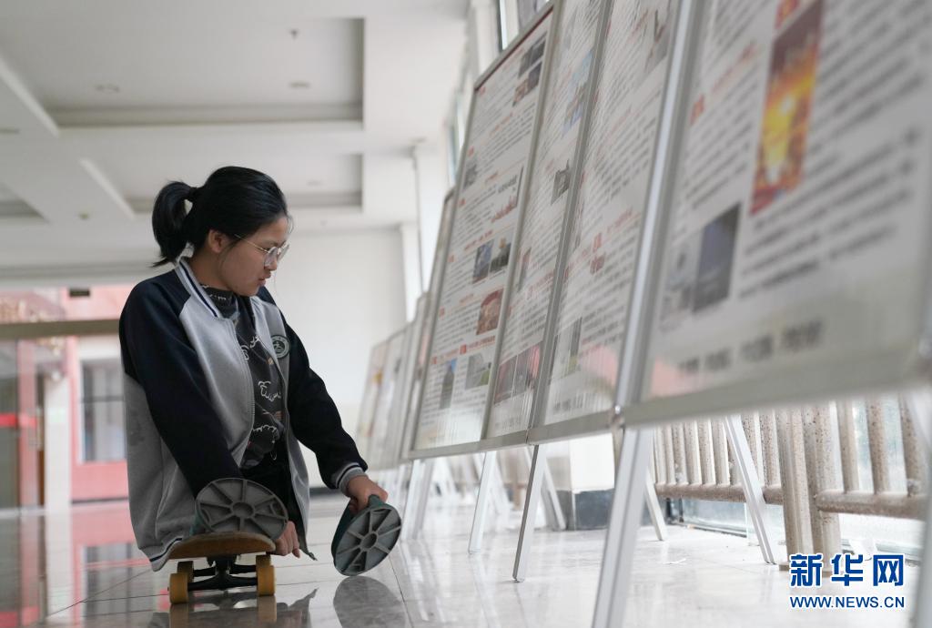 16歲的蔣張子怡是江西上饒中學(xué)高中一年級(jí)的學(xué)生。2010年一場(chǎng)車禍奪去了她的雙腿,如今的她只能依靠滑板代步,用雙手前行,為此,大伙都稱她“滑板姑娘”。