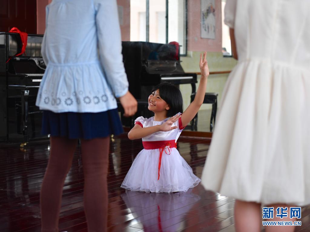 2017年5月17日,蔣張子怡在學(xué)校的舞蹈房?jī)?nèi)給舞伴們講解舞蹈的分解動(dòng)作。