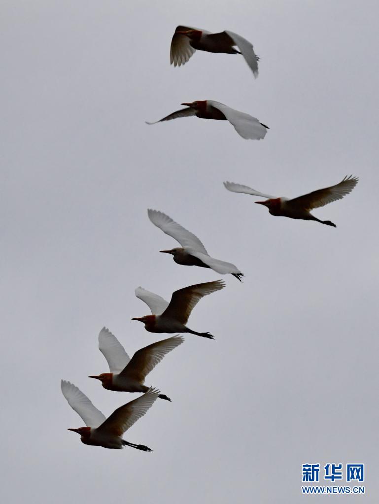 牛背鷺在易貢國家地質(zhì)公園上空飛翔(5月22日攝)。