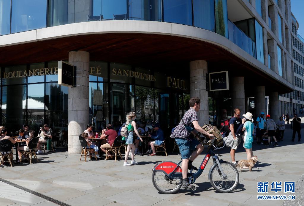6月1日,人們在英國倫敦一家咖啡廳的戶外餐飲區(qū)就餐。