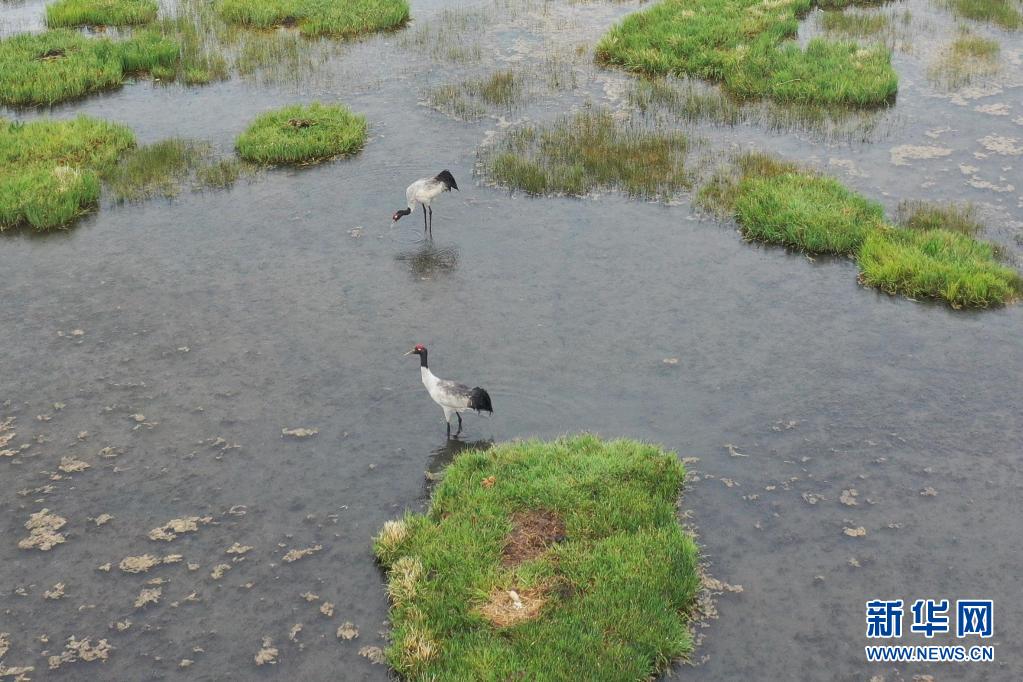 尕海濕地位于青藏高原東北邊緣的甘肅省甘南藏族自治州碌曲縣境內,是黃河重要支流洮河的發源地和水源涵養地。因其生態優良、氣候適宜,近年來成為黑頸鶴、黑鸛、白尾海雕等珍稀候鳥的棲息地。目前正值黑頸鶴等珍稀候鳥的繁殖季節,一批幼鳥即將破殼而出。
