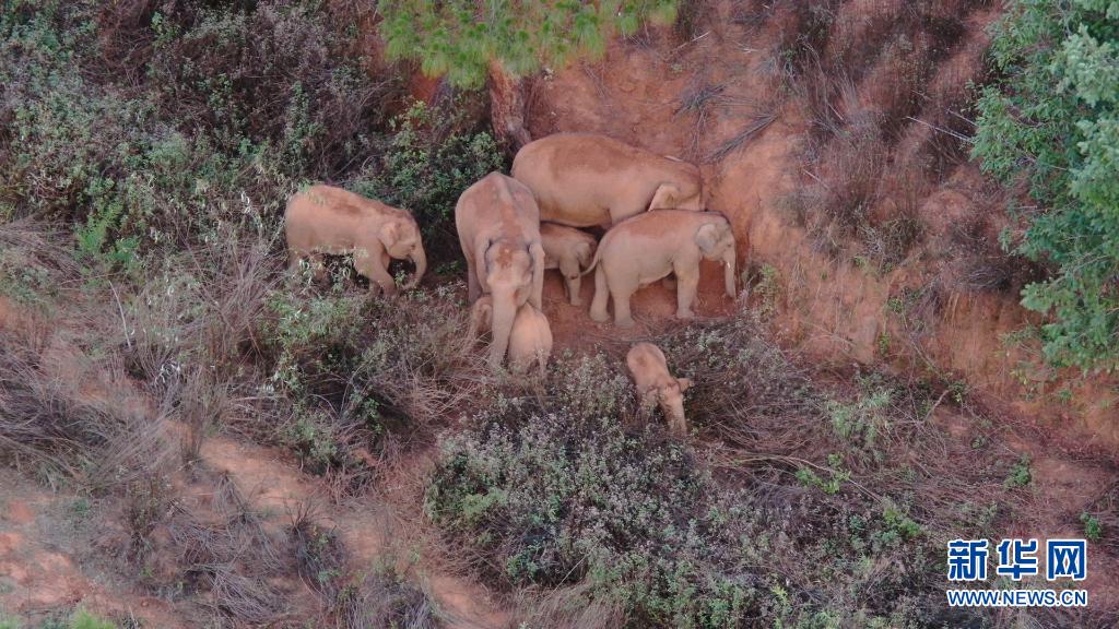 6月15日在玉溪市易門縣十街鄉拍攝的象群(無人機照片)。新華社發(云南省森林消防總隊供圖)