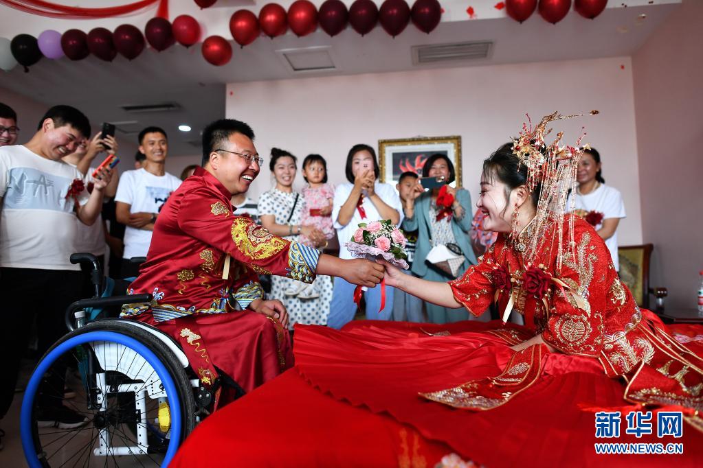 周海云向關(guān)美獻(xiàn)花(6月15日攝)。新華社記者 詹彥 攝