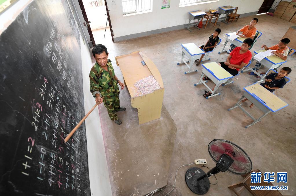 在廣西上思縣那琴鄉(xiāng)中心小學(xué)逢通村教學(xué)點(diǎn),梁志雄老師在給學(xué)生上課(6月16日攝)。新華社記者 陸波岸 攝