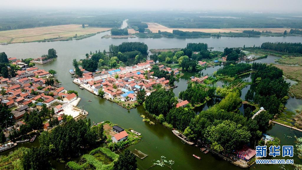 這是郵遞員王少朋服務的微山縣南陽鎮柳溝村和龔莊村(6月20日攝,無人機照片)。