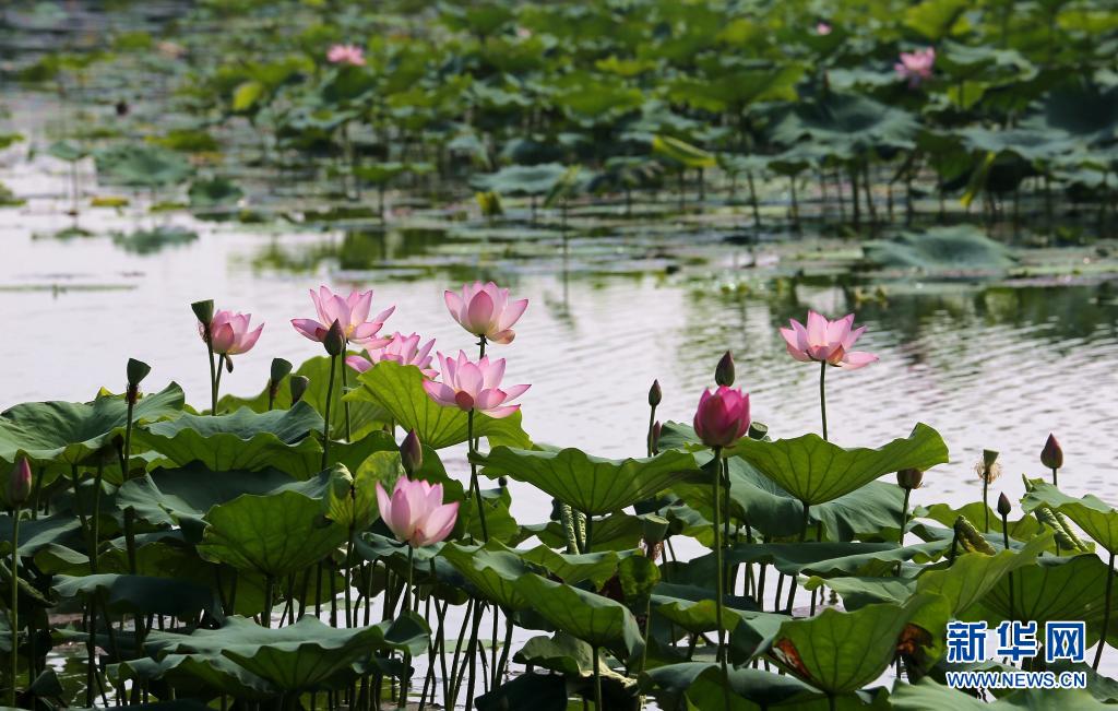 6月21日在江蘇省句容市赤山湖國家濕地公園拍攝的荷花。