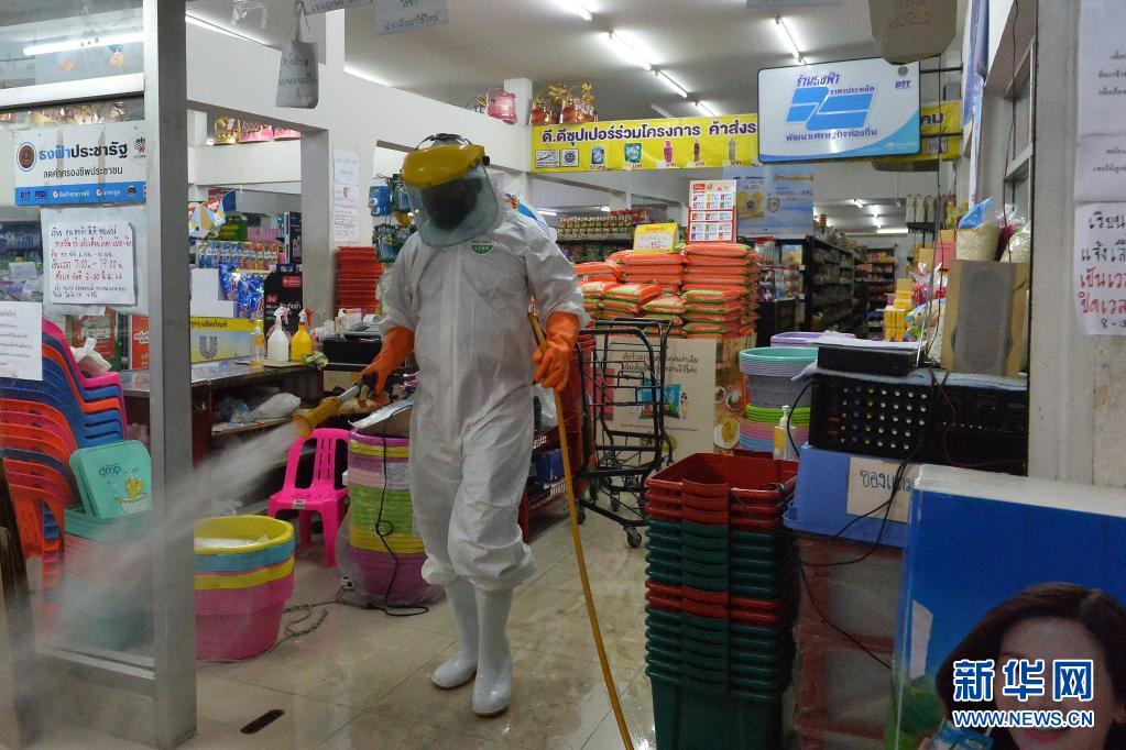 6月21日,工作人員在泰國首都曼谷一處生鮮市場(chǎng)進(jìn)行消毒。