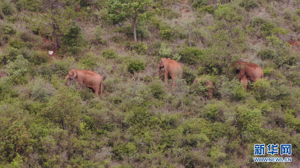 6月22日在云南省玉溪市峨山縣大龍?zhí)多l(xiāng)附近拍攝的象群(無人機視頻截圖)。