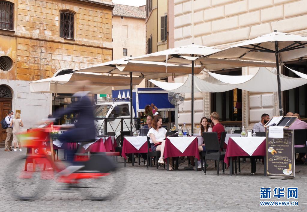 6月24日,人們在意大利羅馬一家餐館的戶外區(qū)域消費。