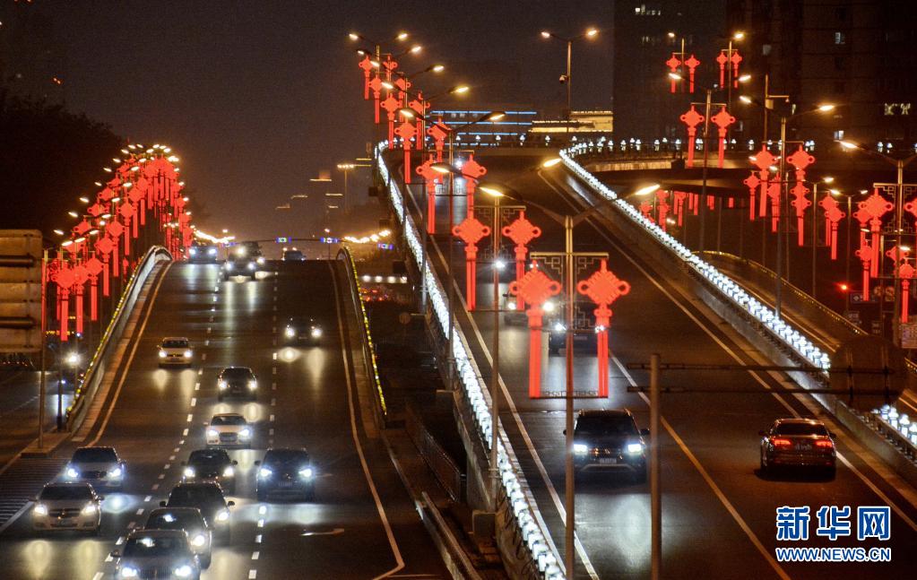 彩燈裝扮的北京市復興路(6月28日攝)。