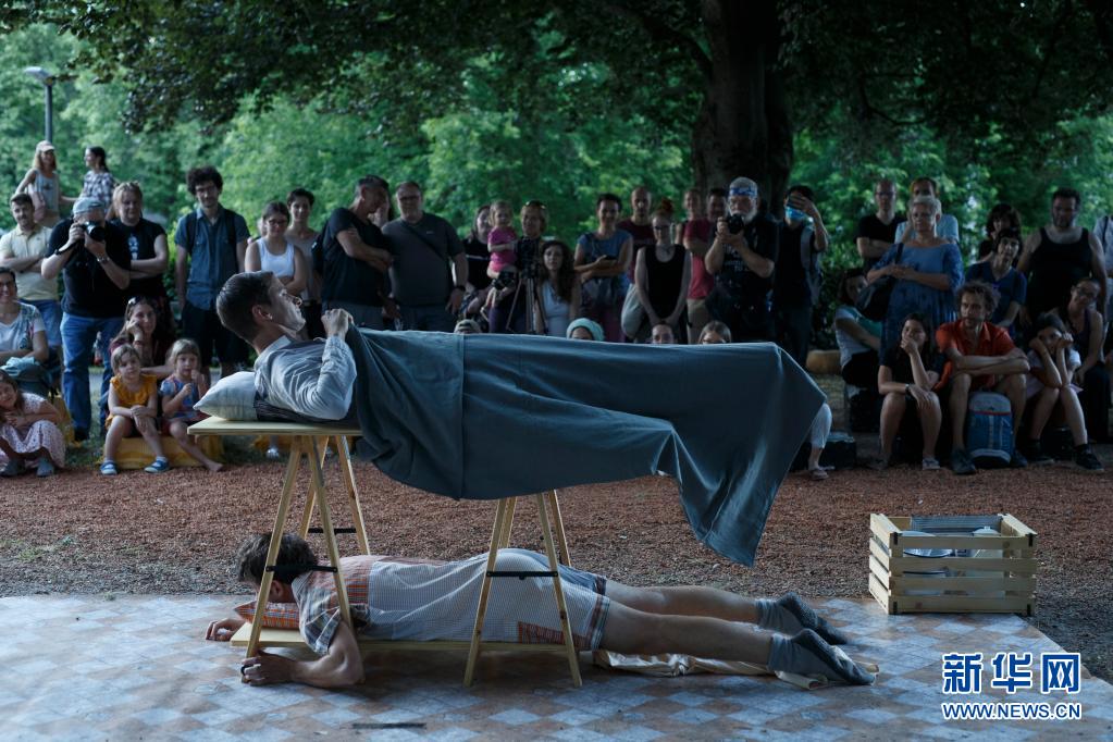 6月30日傍晚,藝術工作者在斯洛文尼亞首都盧布爾雅那進行街頭戲劇節表演。