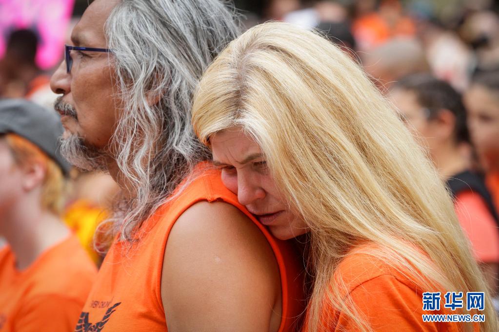 當(dāng)天是加拿大日,上千名抗議者在溫哥華集會(huì),悼念加拿大在強(qiáng)制“同化”原住民過(guò)程中遭到殘害的兒童,呼吁取消加拿大日的慶祝活動(dòng)。