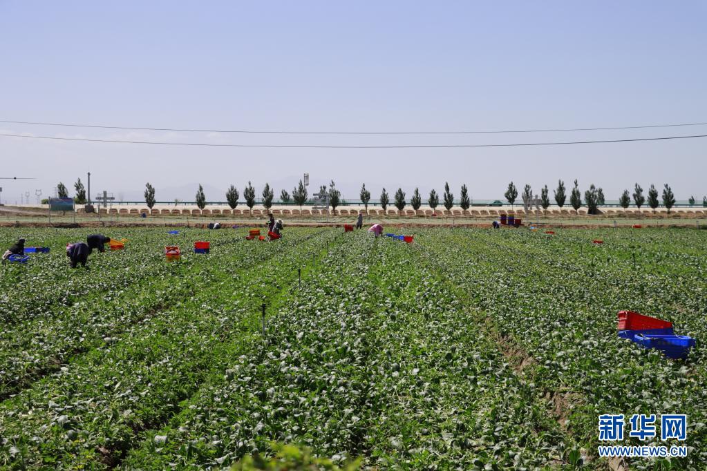 7月4日,在甘肅省張掖市甘州區(qū)烏江鎮(zhèn)供港蔬菜基地,當?shù)厝罕娫诓烧卟恕?/p>