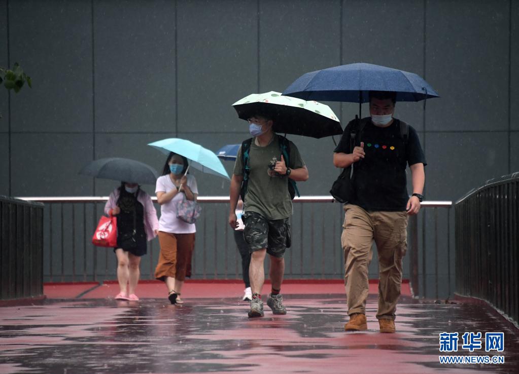 7月12日, 市民行走在北京市海淀區四通橋附近的一處天橋上。